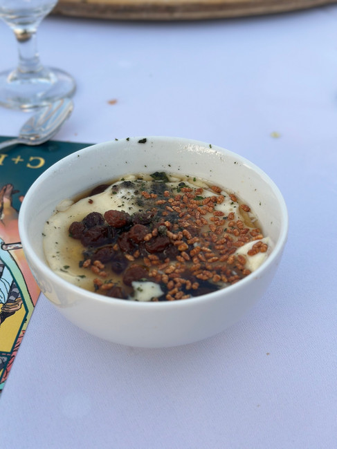 Then the beauty of dumplings was inherently very Japanese because the filling was just like a pork belly that was supposed to taste like ramen broth, but everything else about it, like the crispy cheese, the shishito verde, the cilantro oil, I feel like brought it back to feeling like fusion in Taiwanese. There was also 酸菜 (Taiwanese pickled salt mustard green) mixed in with the filling, so it brought in a little bit of Taiwanese flavor.