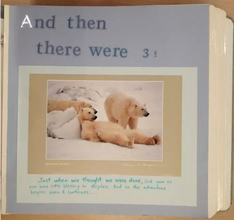 每一个孩子都有他的部分,从蓝色的“婴儿照片”页开始。这是凯文: